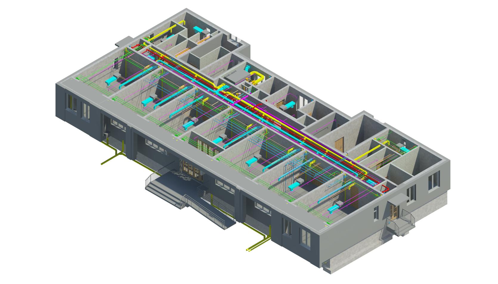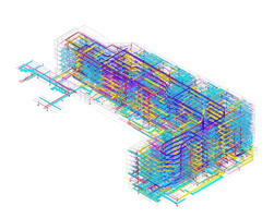 三維管線綜合是在BIM三維建筑設(shè)計(jì)的基礎(chǔ)之上對(duì)機(jī)電專業(yè)的管線與橋架進(jìn)行走向優(yōu)化、標(biāo)高調(diào)整以及碰撞檢查。設(shè)計(jì)師可以通過(guò)三維設(shè)計(jì)軟件在計(jì)算機(jī)中搭建與實(shí)際工程1:1的建筑模型,并且通過(guò)各專業(yè)協(xié)同功能可以讓不同專業(yè)的設(shè)計(jì)師更全面的獲取相關(guān)專業(yè)的信息,更完整的獲取其他設(shè)計(jì)師的設(shè)計(jì)意圖。由于建筑信息模型的使用,可以避免傳統(tǒng)二維設(shè)計(jì)中不同設(shè)計(jì)師間信息傳遞的缺失與誤解,從而在設(shè)計(jì)中提前解決了許多以前只有在工地施工中才能碰到的問(wèn)題,提高了設(shè)計(jì)的質(zhì)量并有效保證了施工的周期控制與質(zhì)量控制。